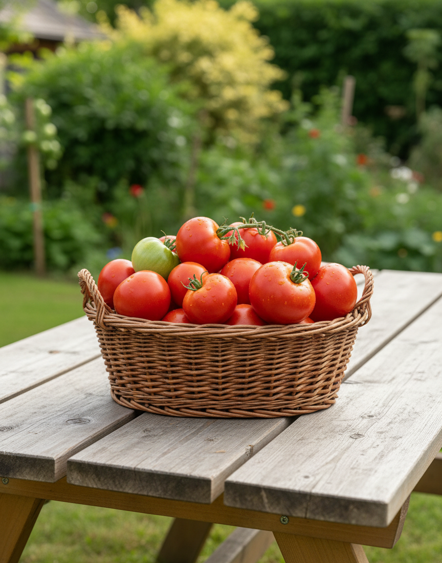 • Tipp: Seitentriebe bei Stabkultur regelmäßig ausgeizen und mit Stäben/Schnur stabilisieren – das sorgt für größere, gleichmäßig ausreifende Früchte.